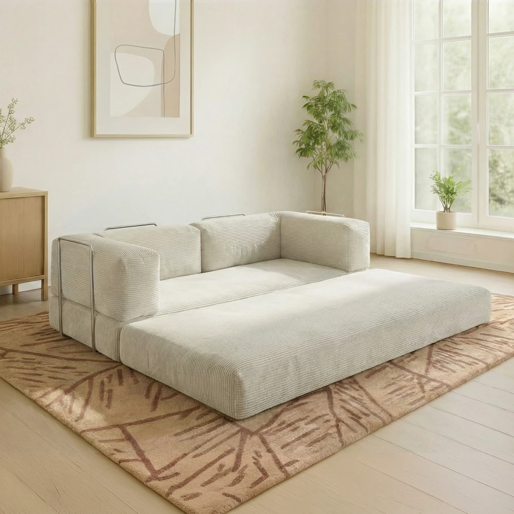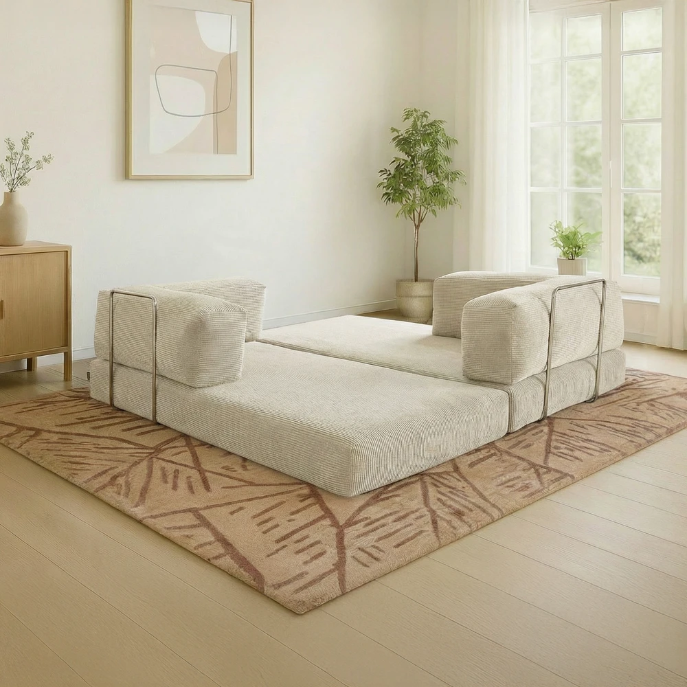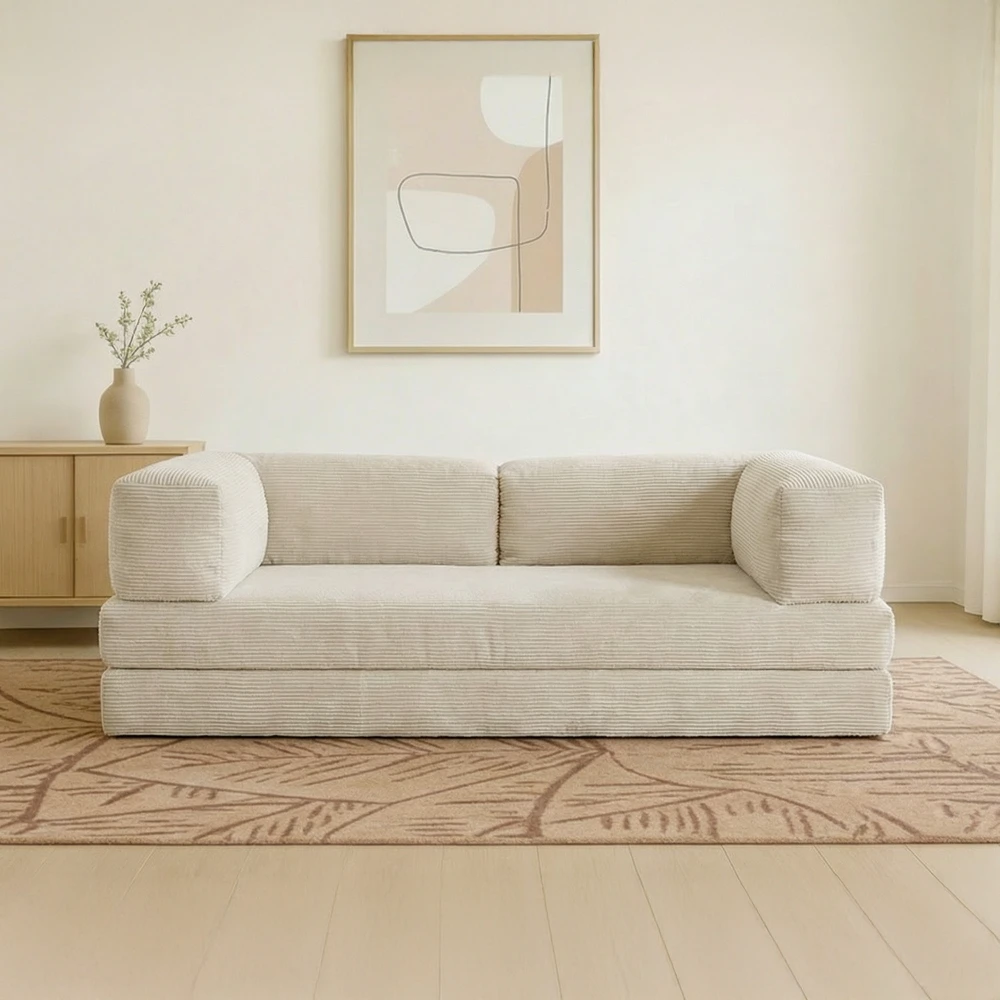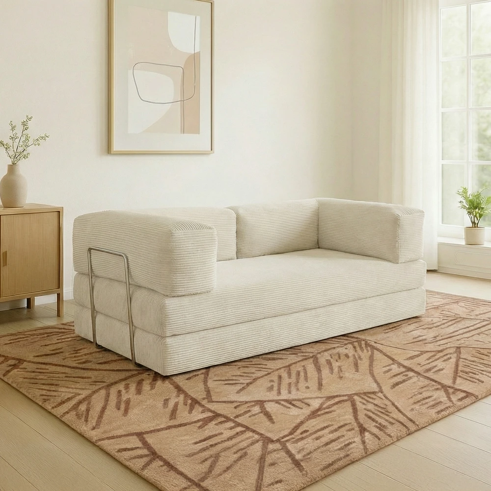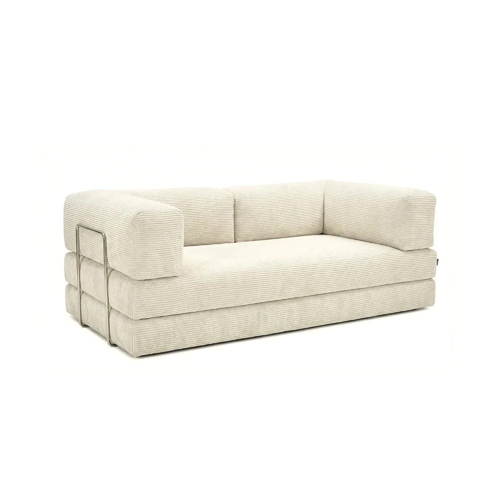 Sa structure sans mécanisme complexe le rend particulièrement pratique et facile à manipuler. Parfait pour les petits espaces, les studios, les chambres d’amis ou les intérieurs à l’esprit minimaliste, ce canapé convertible devient rapidement un couchage d’appoint confortable.