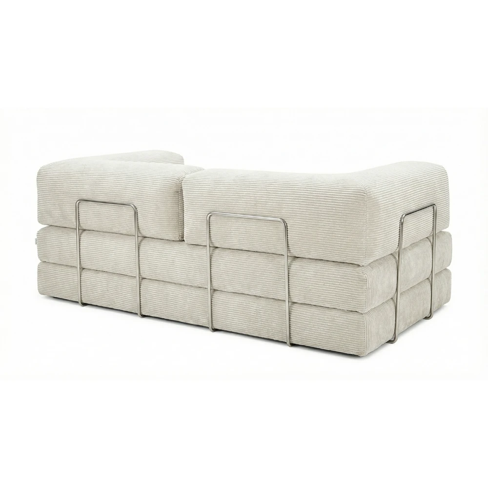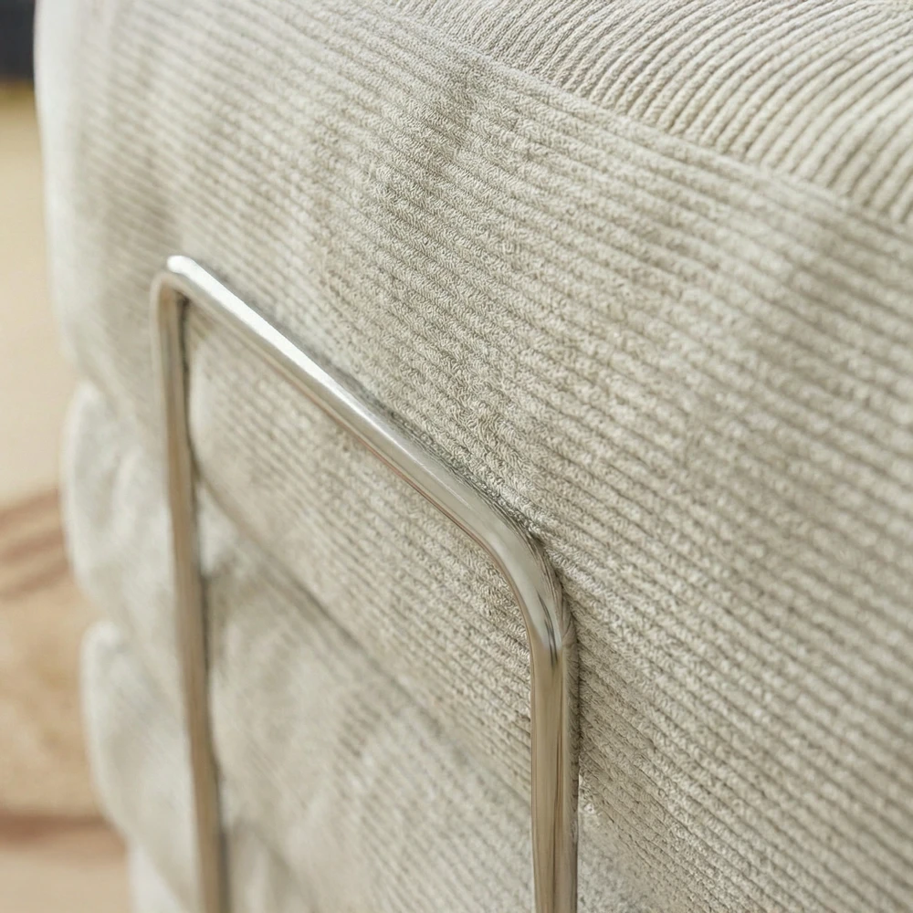 Un détail métallique subtil sur le côté ajoute une touche design, renforçant l’esthétique épurée de la pièce. Son allure moelleuse et enveloppante en fait un véritable cocon au quotidien.
