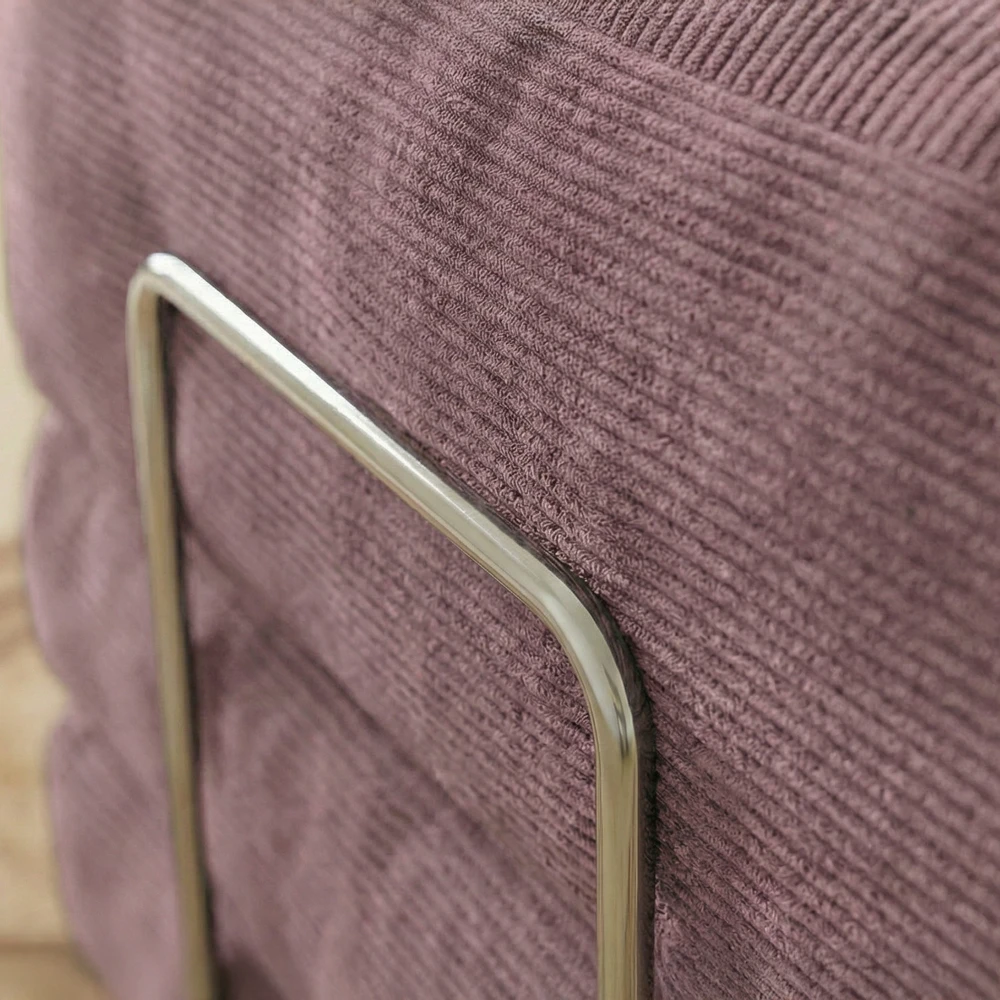 Un détail métallique subtil sur le côté ajoute une touche design, renforçant l’esthétique épurée de la pièce. Son allure moelleuse et enveloppante en fait un véritable cocon au quotidien.