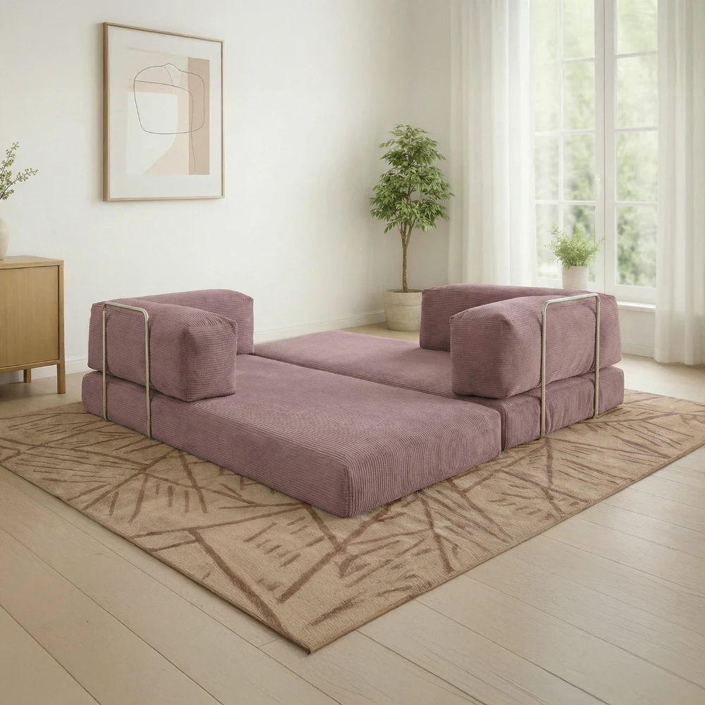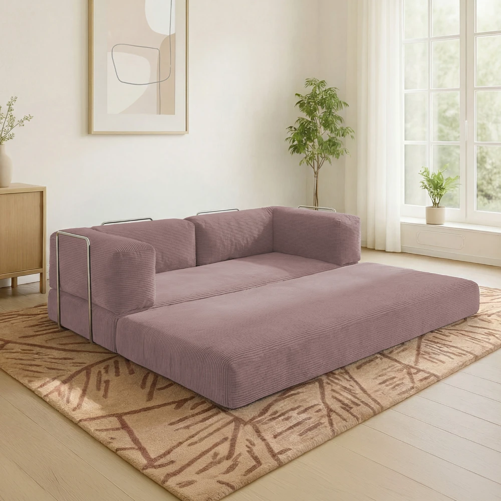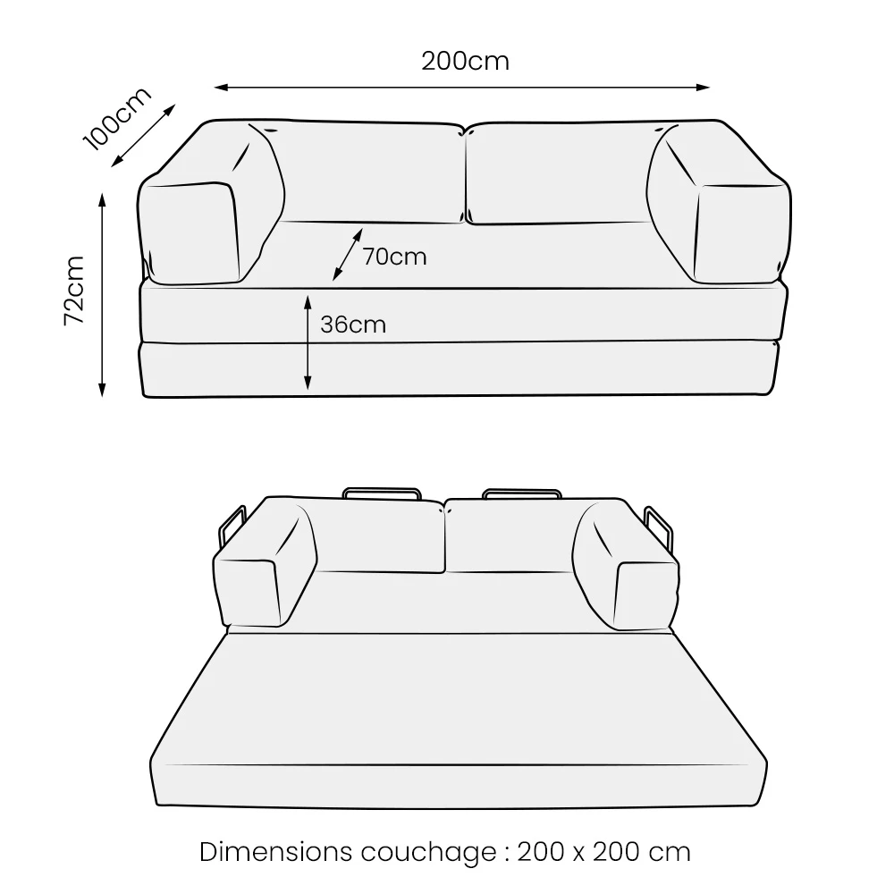 Sa structure sans mécanisme complexe le rend particulièrement pratique et facile à manipuler. Parfait pour les petits espaces, les studios, les chambres d’amis ou les intérieurs à l’esprit minimaliste, ce canapé convertible devient rapidement un couchage d’appoint confortable.