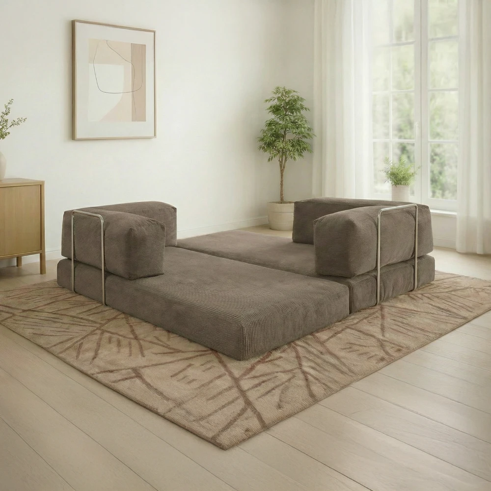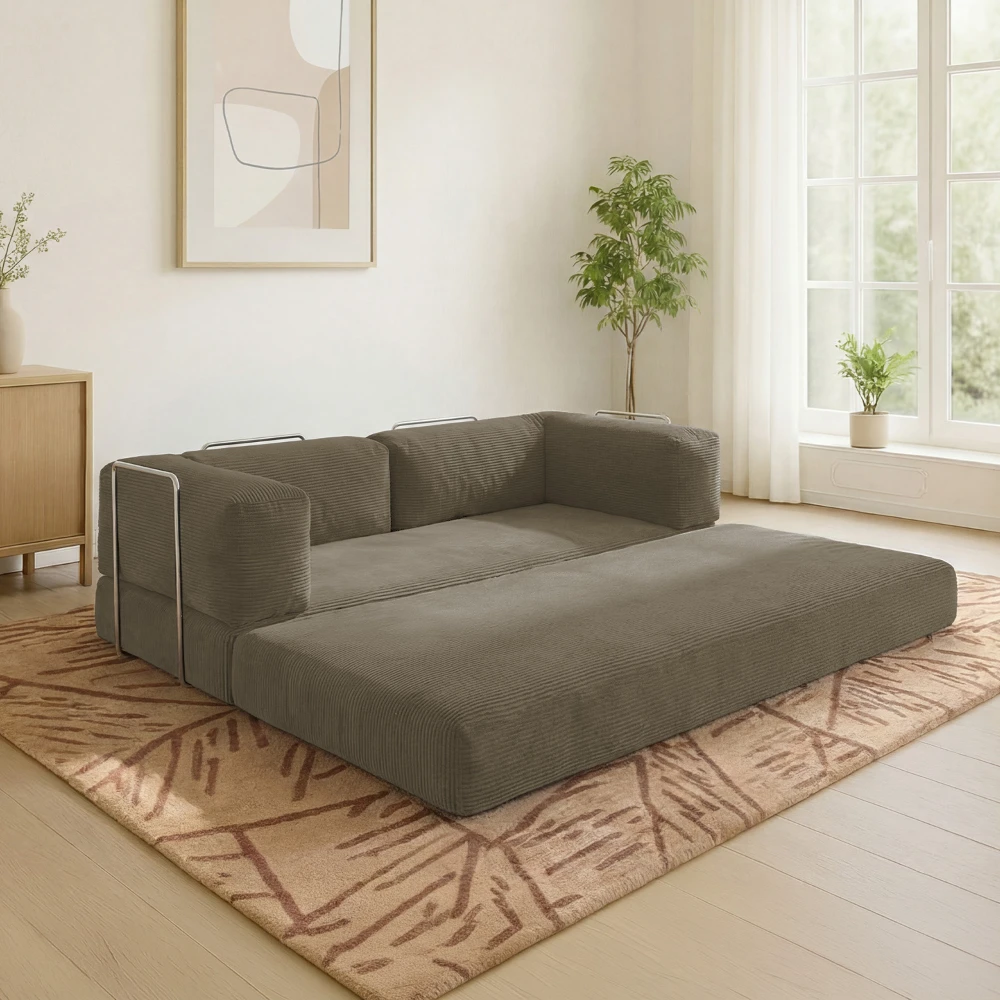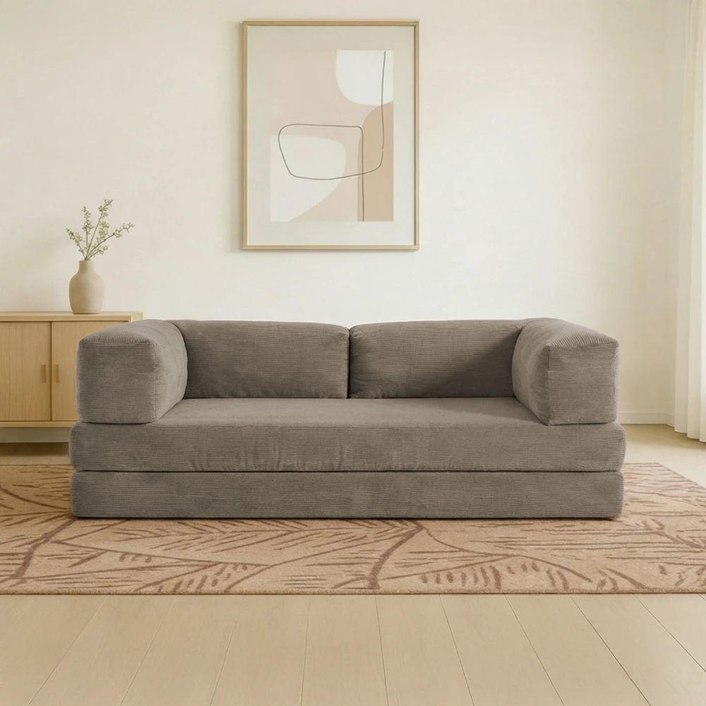 Sa structure sans mécanisme complexe le rend particulièrement pratique et facile à manipuler. Parfait pour les petits espaces, les studios, les chambres d’amis ou les intérieurs à l’esprit minimaliste, ce canapé convertible devient rapidement un couchage d’appoint confortable.