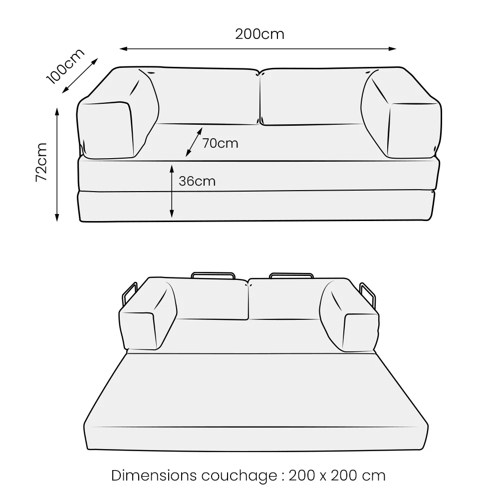 - Dimensions couchage (lxL) 200 x 200 cm