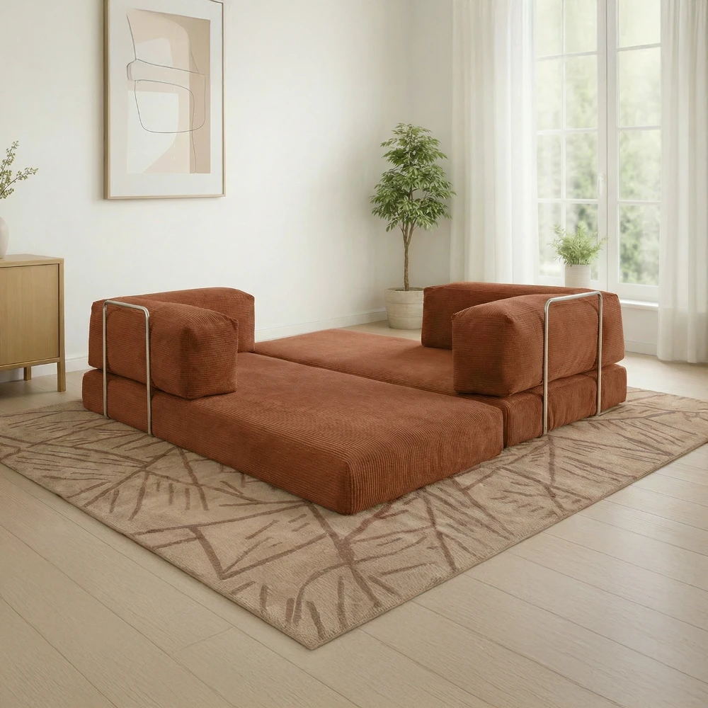 Sa structure sans mécanisme complexe le rend particulièrement pratique et facile à manipuler. Parfait pour les petits espaces, les studios, les chambres d’amis ou les intérieurs à l’esprit minimaliste, ce canapé convertible devient rapidement un couchage d’appoint confortable.