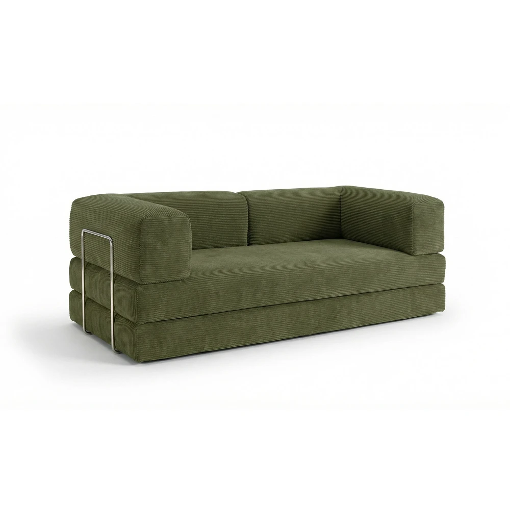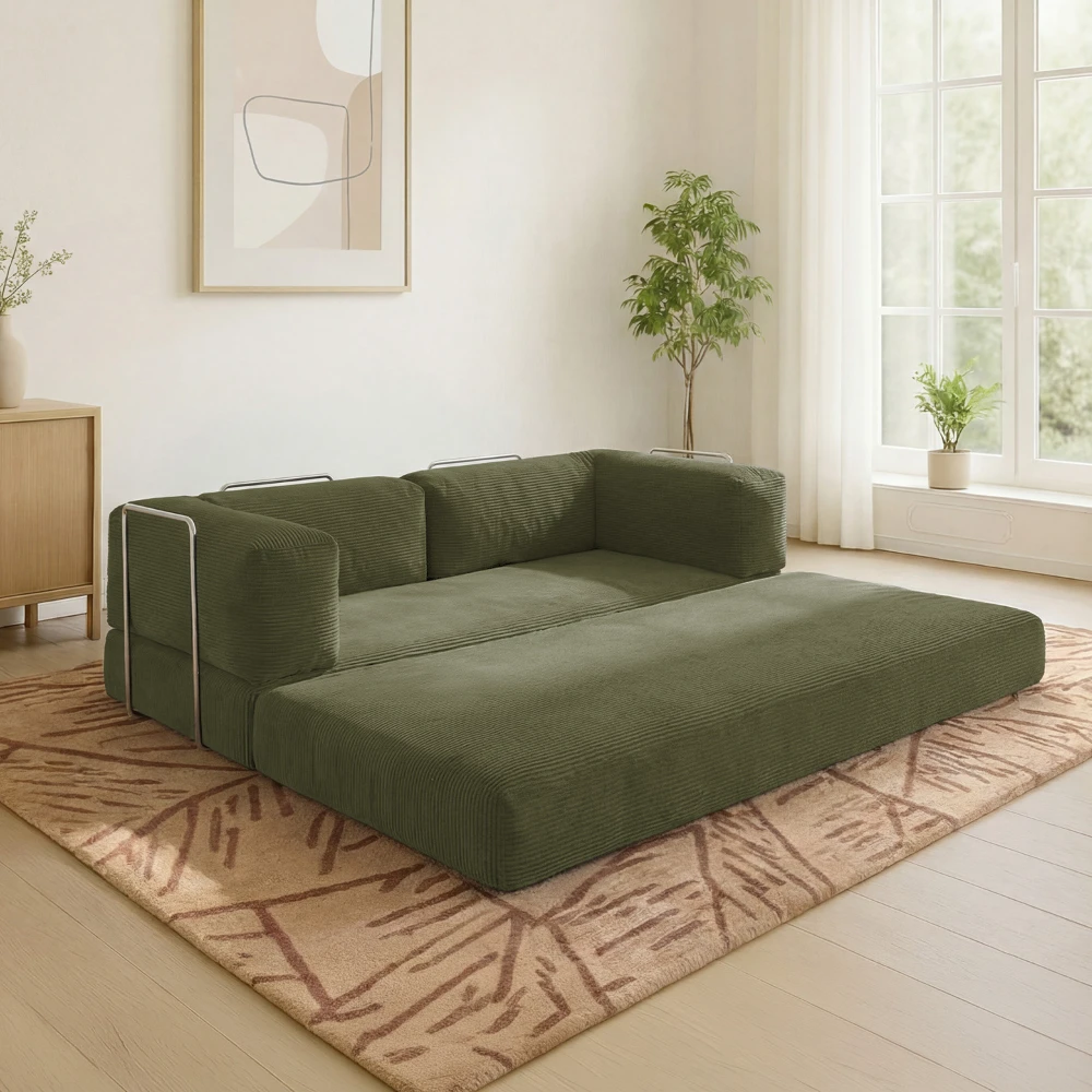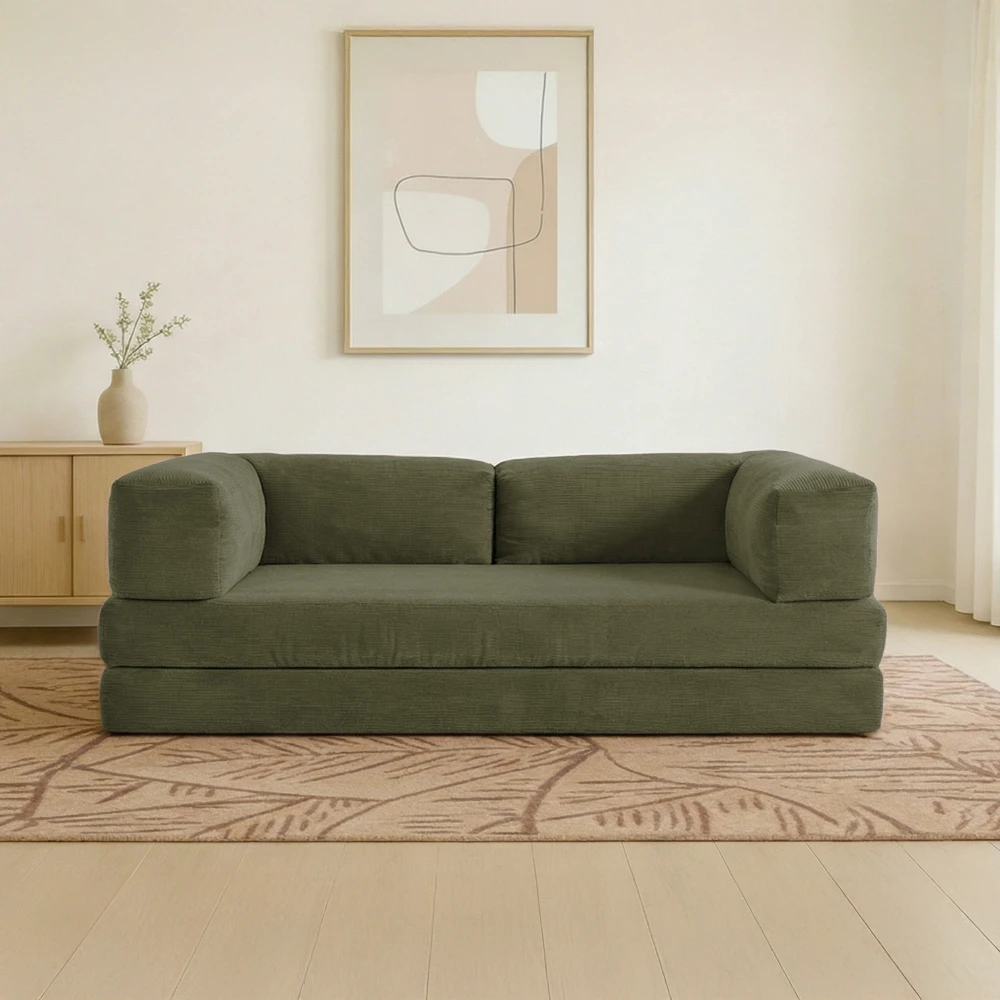 Sa structure sans mécanisme complexe le rend particulièrement pratique et facile à manipuler. Parfait pour les petits espaces, les studios, les chambres d’amis ou les intérieurs à l’esprit minimaliste, ce canapé convertible devient rapidement un couchage d’appoint confortable.